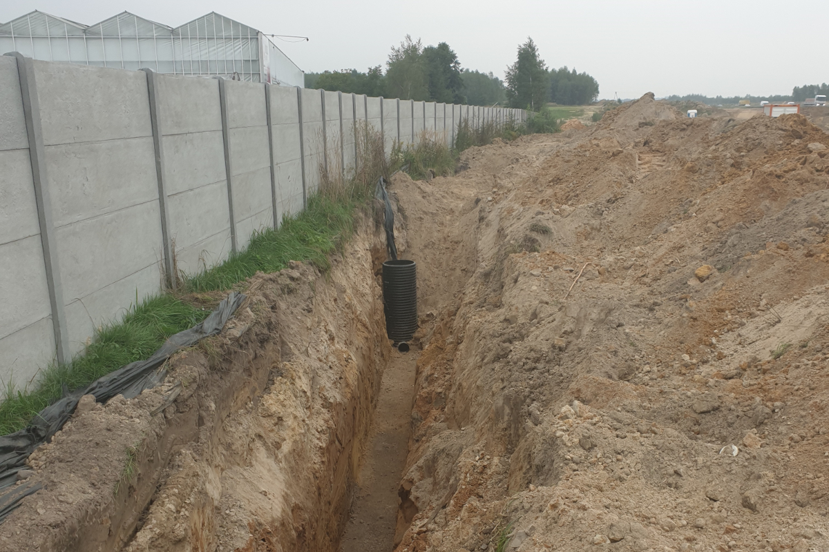 Prawdziwymi gwiazdami tej realizacji są dwa zbiorniki przepompowni DN1200 długości 7,4 mb wyprodukowane, dostarczone i zamontowane na placu budowy w Paszczynie.