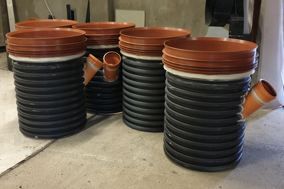 Ostatnie z ciekawszych zleceń dotyczyło produkcji studni PP o średnicy DN1000 z kinetą pod rurę K2KAN średnicy DN400 marki Kaczmarek.