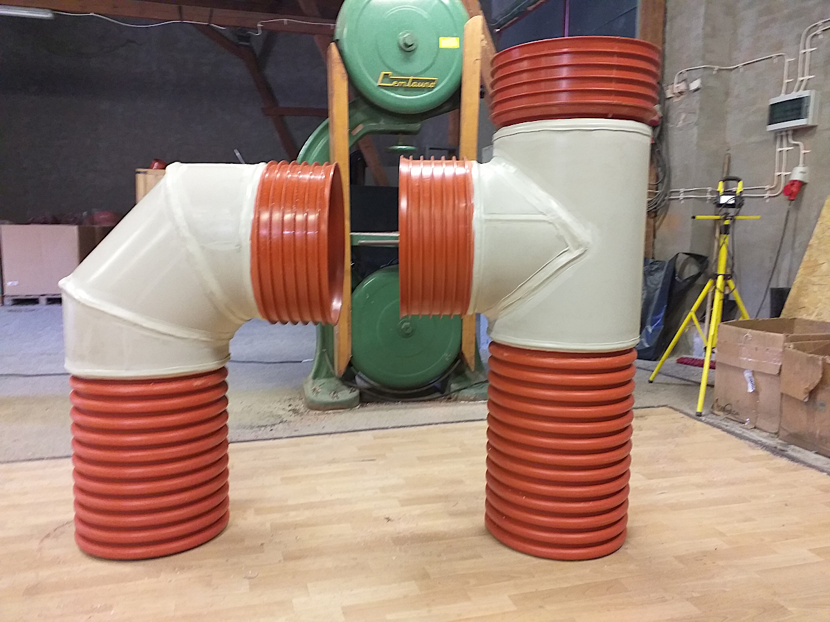 Zrealizowaliśmy zlecenie produkcji kształtek do rur K2KAN (Kaczmarek) o średnicy DN400. Wykonane kolano i trójnik będą elementami kaskady.