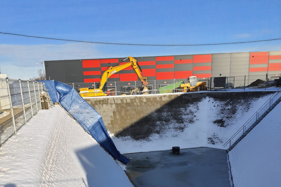 Spawanie rozciętej foli i uszczelnianie zbiornika przeciwpożarowego w Boguszycach Gorce. Kategorie: RealizacjeWykonawstwo sieciZbiorniki Tagi: folia PE spawaniespawanie folispawanie PE