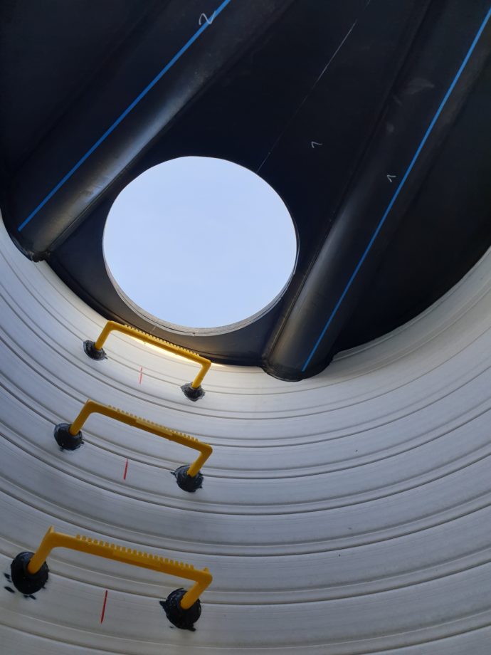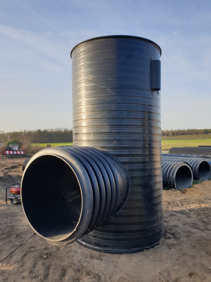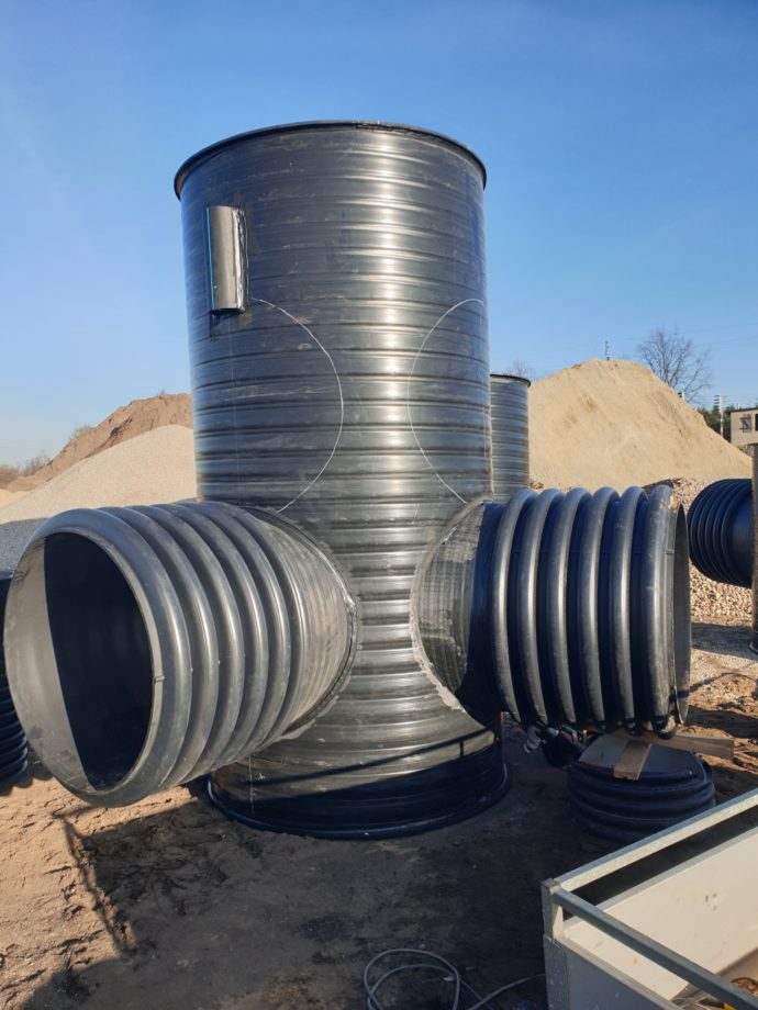 Wyprodukowaliśmy studnie osadnikowe DN1500 SN8 z króćcami kolorowymi o średnicach DN1000 DN800 DN600.