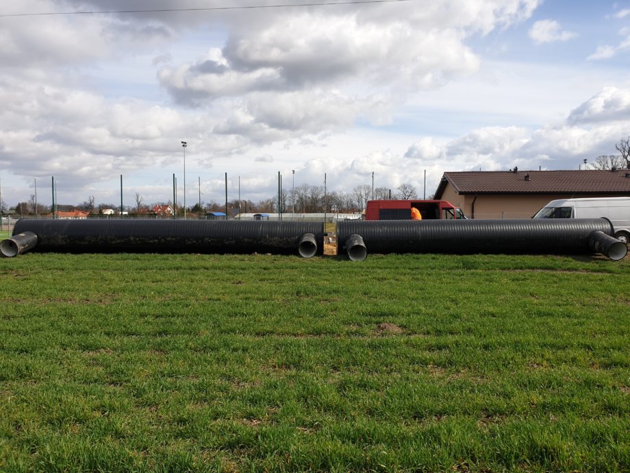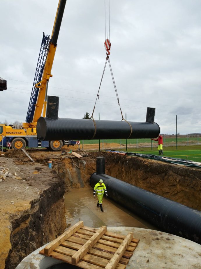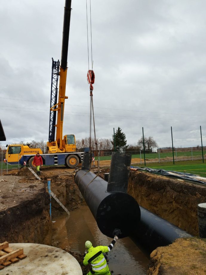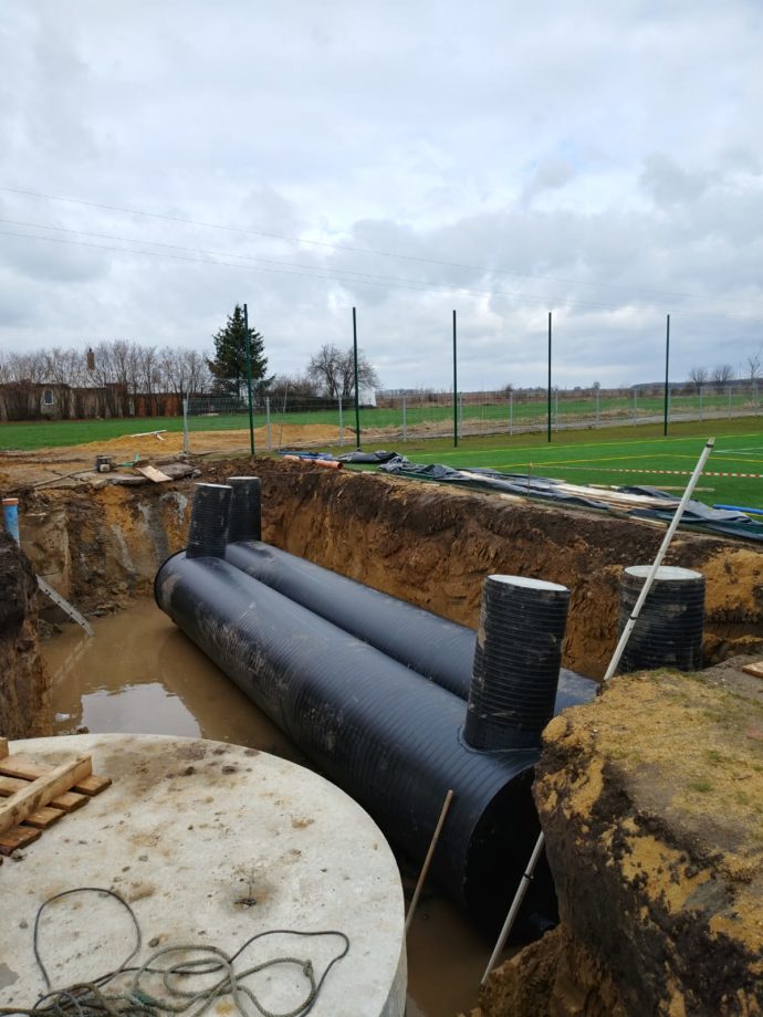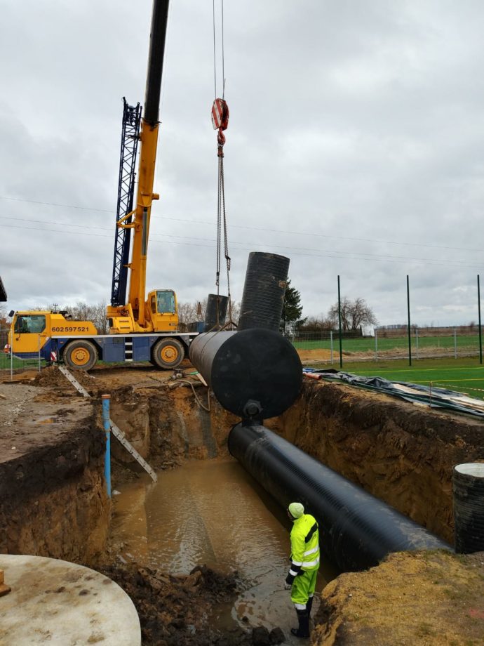 Poniżej przedstawiamy zdjęcia z montażu zbiornika wody deszczowej na boisku w miejscowości Smolec pod Wrocławiem.